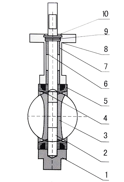 圖中標(biāo)注數(shù)字注釋:1表示閥體,2表示閥軸,3表示蝶板,4表示閥座,5表示填料,6表示襯套,7表示密封圈,8表示圓墊片,9表示對(duì)開環(huán),10表示擋圈。
