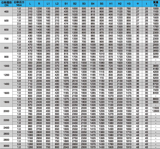 口徑(mm) DN≤1000 1000-2000 2100-3000 ≥3000