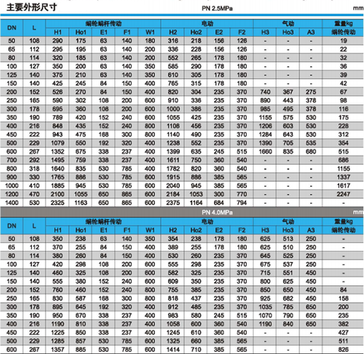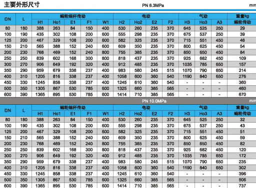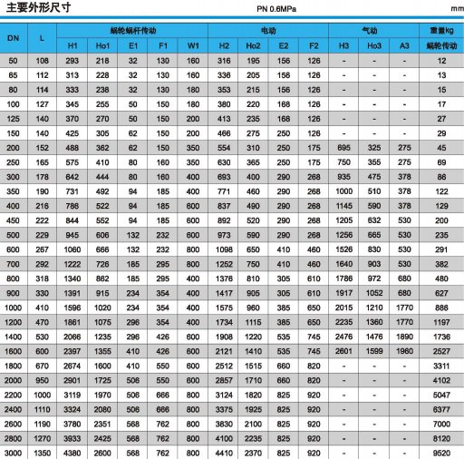 下列圖中的閥門結(jié)構(gòu)長度:DN<2000按ISO5752的13系列;DN≥2000按ISO5752的41系列。