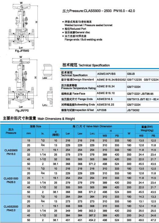 工作壓力(MPa) | 1.6~42.0 (Calss150-Calss2500) | |||