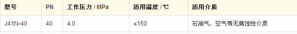 閥門具體型號(hào)為j41n-40,公稱通徑常用的從DN10~DN150,適用溫度小于等于150攝氏度,適用的介質(zhì)有石油氣、空氣等無(wú)腐蝕性介質(zhì)。