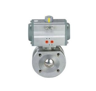 Q671球閥由氣動雙活塞齒輪齒條執(zhí)行器和超短法蘭距球閥組合而成,閥體部分同“1”電動球閥閥體一樣。氣動活塞執(zhí)行機構(gòu)分有彈簧式和無彈簧式兩種。故障下要求閥全開或關(guān)閉時配有彈簧式(靠彈簧的恢復(fù)張力復(fù)位),故障下要求保位時,配無彈簧式。它主要由缸體、彈簧、活塞、活塞桿、前后缸蓋、齒條、輸出軸等零部件組成。對兩位開關(guān)閥,需配電磁閥以及行程開關(guān)等;對比例式調(diào)節(jié)閥,需配定位器。