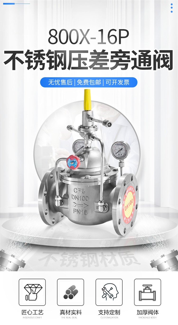 不銹鋼壓差旁通閥800X-16P 加厚閥體啟閉平穩(wěn)