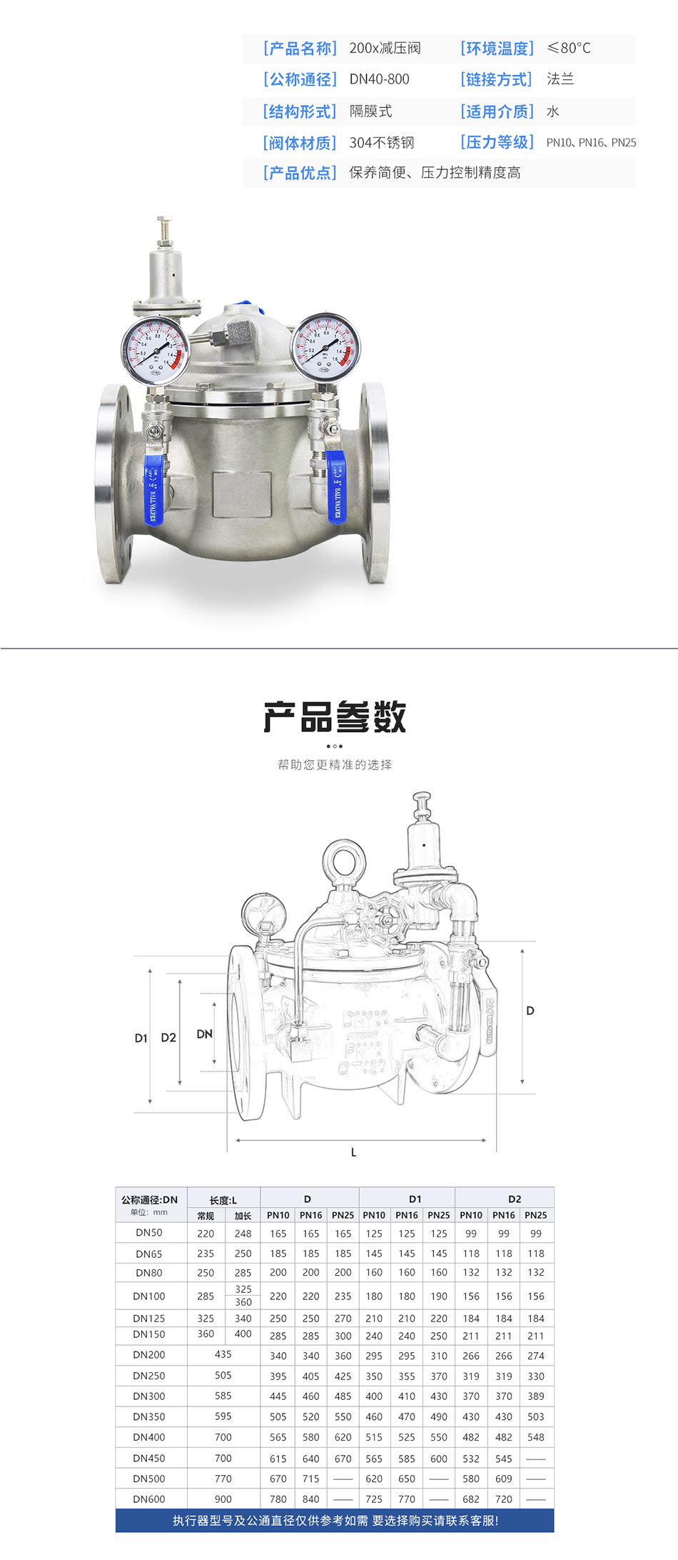 不銹鋼可調(diào)式減壓閥自來水200X-16P 先導式法蘭消防水力控制閥門